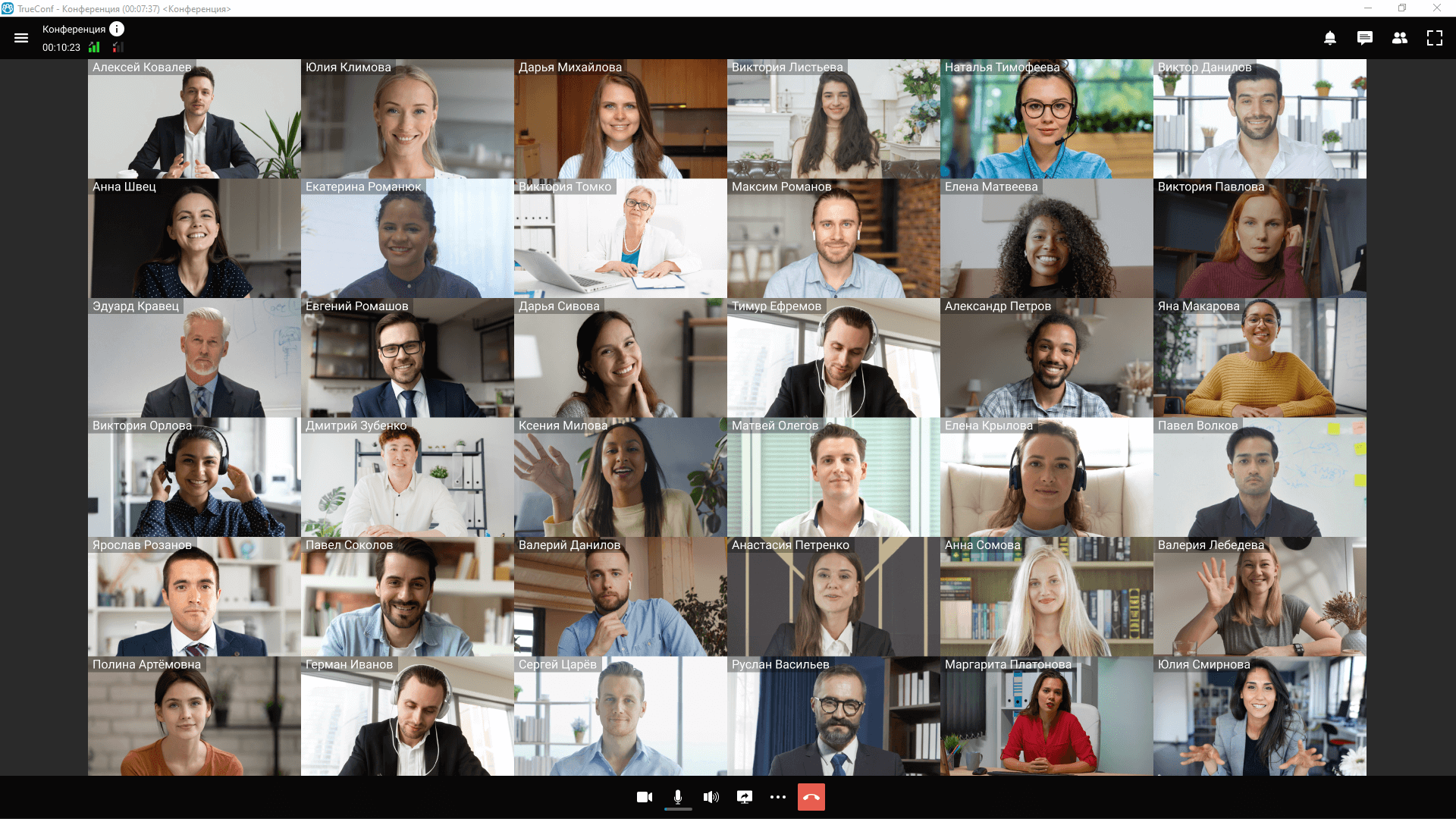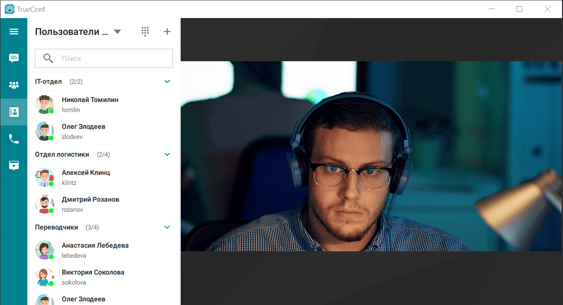 В любое время звоните и приглашайте в групповую видеоконференцию пользователей вашей АТС, внешних телефонных абонентов или даже VoIP-устройства, зарегистрированные на TrueConf Server V.